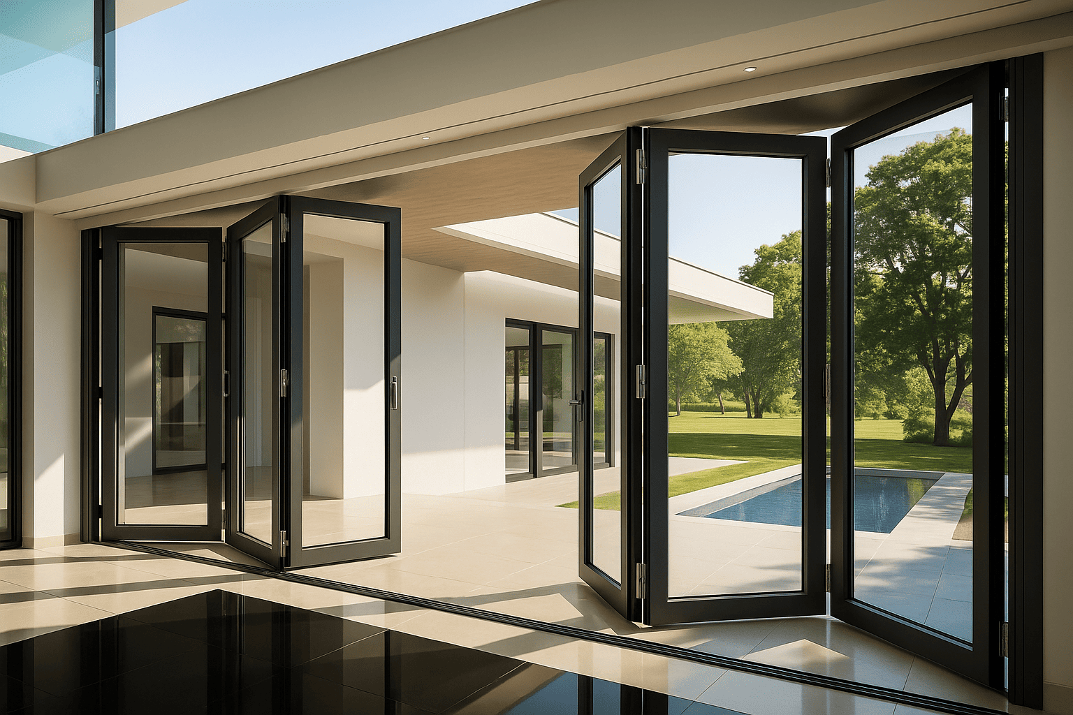 ·Space-Saving Design: One key advantage of folding windows is their space efficiency. Because panels fold on themselves, they don’t protrude far into the room or require a wide swinging arc. This makes them ideal for areas where a projecting casement or standard French window might be impractical. The folding mechanism allows wide openings without needing extra floor space for the window panels – the panels neatly tuck to the side on their track.